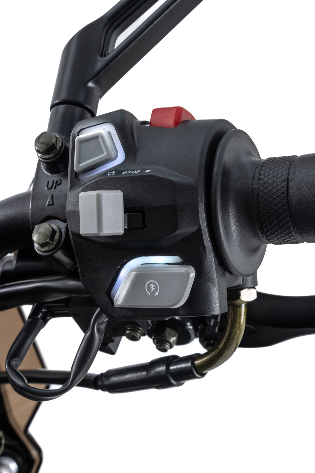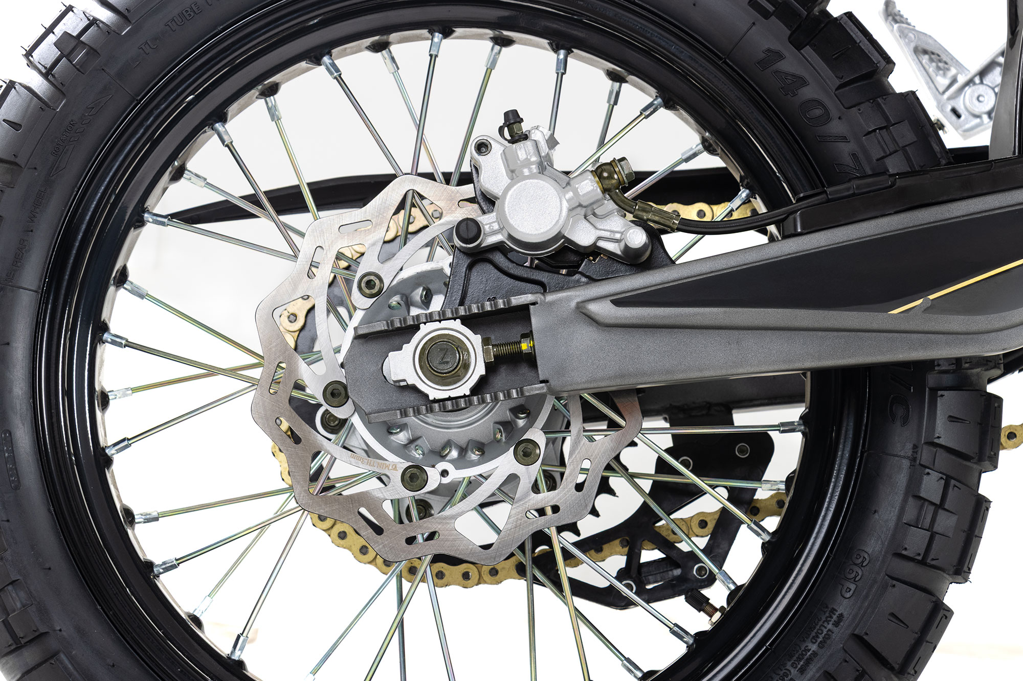 Frenos de disco ventilado y sistema hidráulico que garantizan respuesta inmediata y precisa, sin importar la velocidad o el terreno.